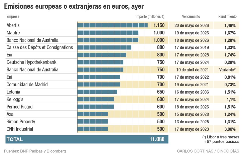 ¿Cuánto pagan las empresas por alquilarte tu dinero en forma de bonos? Mapfre, por ejemplo, un 1,6% a 10 años (aquí tienes más ejemplos).